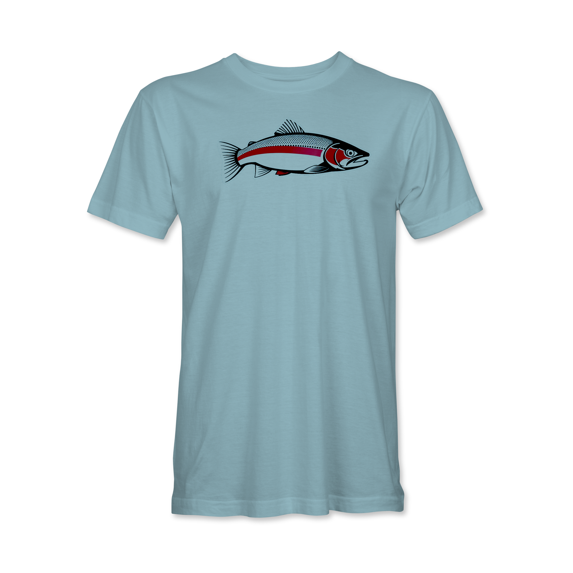 The 'Bow' Rainbow Trout T-Shirt in Slate Blue.