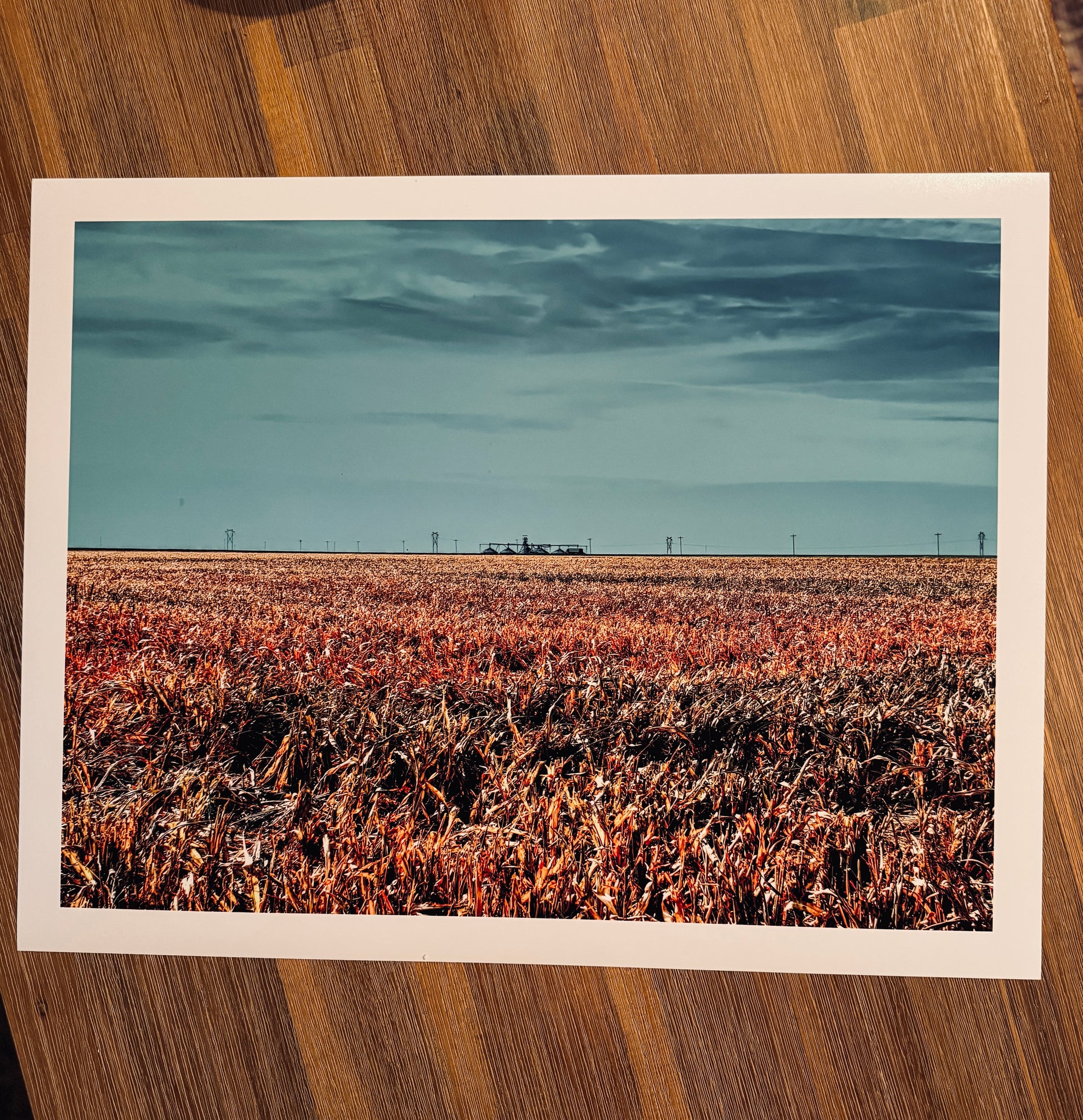 22" W X 17" H PHOTOGRAPHIC ART PRINT OF A CENTRAL KANSAS FARM SHORTLY AFTER MILO HARVEST.