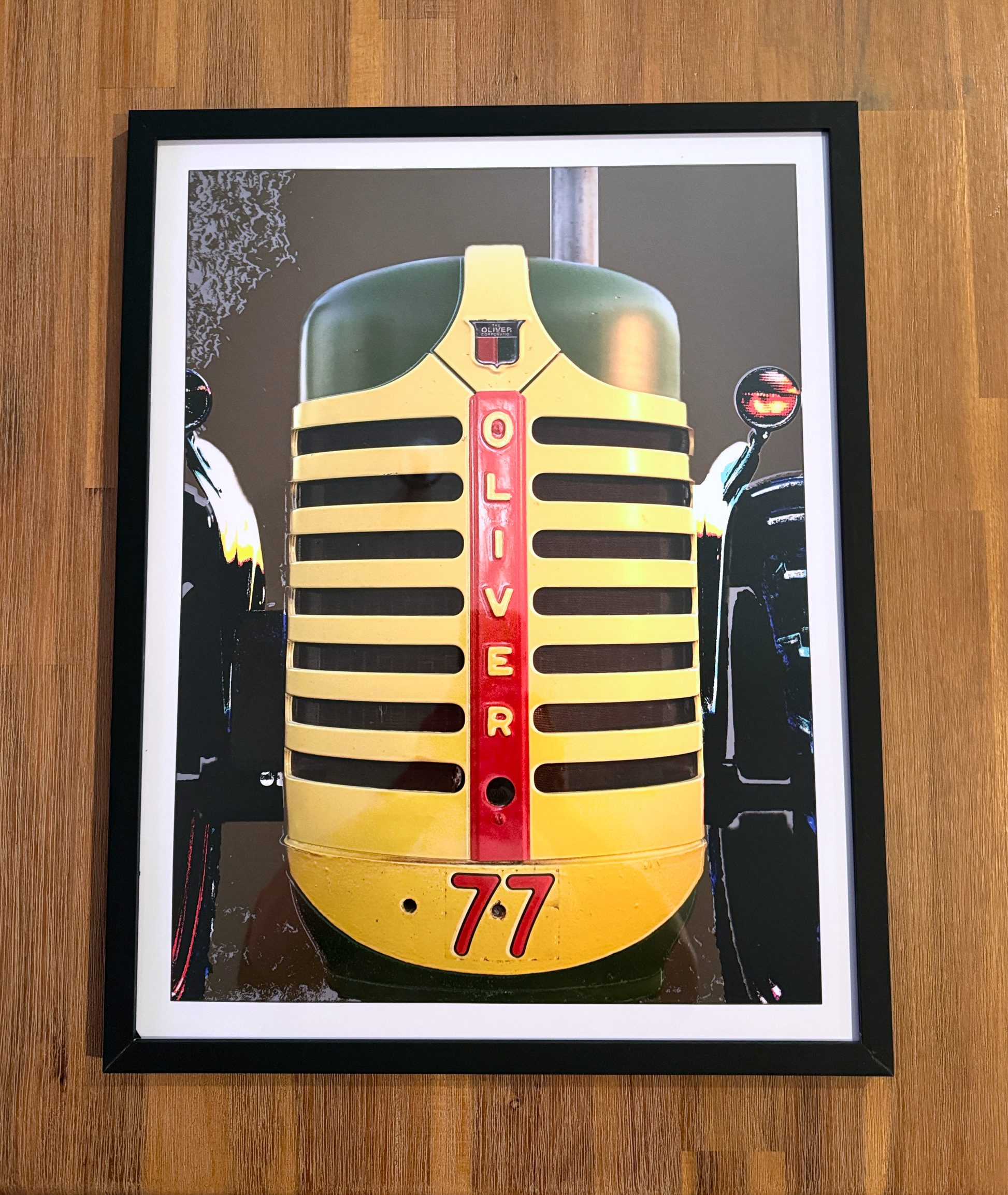 17" W X 22" H photographic art print on 10.2 mil professional luster paper featuring an Oliver Row Crop 77 tractor.
